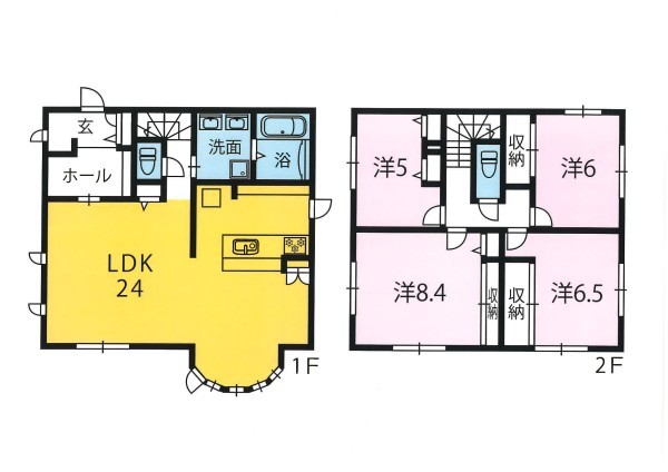 | 小学校区 | 横内小学校区 | 間取り | 1F:LDK23.7 2F:洋8.4/洋6.4/洋5.8/洋4.8 |